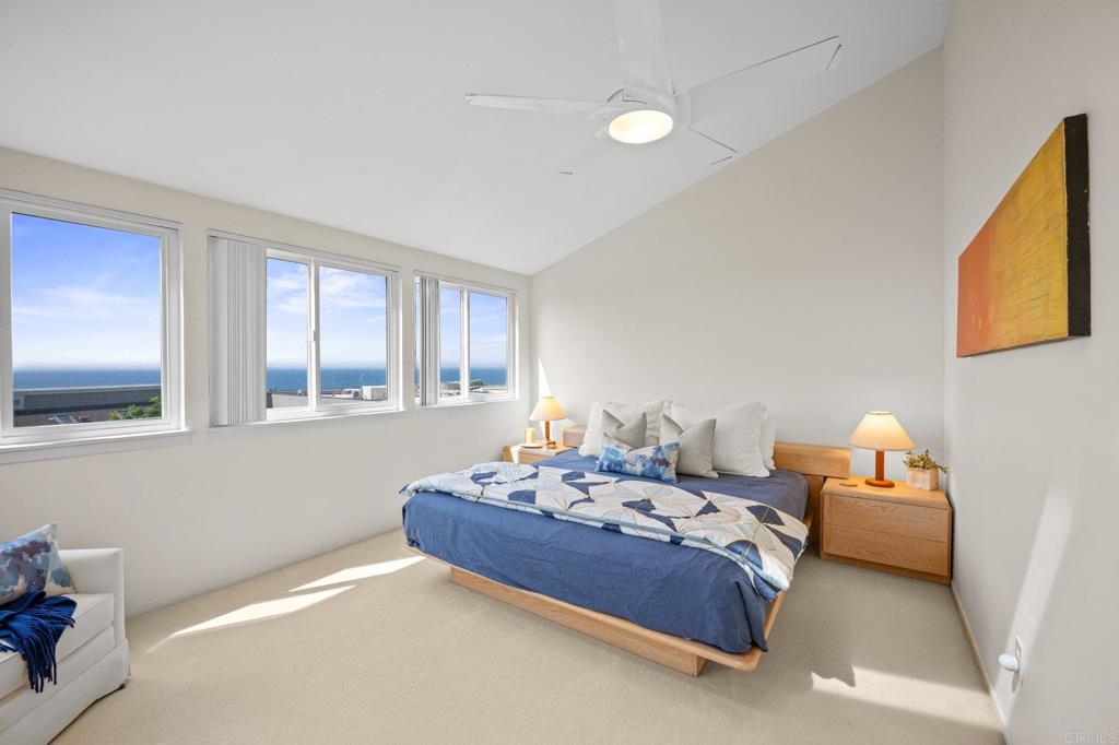 Located within the highly sought after community of SeaBluffe in charming Leucadia. This townhome embodies the perfect blend of comfort, privacy, and relaxed beach living. Spread across 50 lush acres with only 255 homes, SeaBluffe feels like a tranquil seaside village. The entry level welcomes you with two spacious bedrooms, a full bath, and a convenient laundry area. Step down into an inviting open concept living space where the kitchen, dining, and living areas flow seamlessly together ideal for entertaining friends or simply unwinding after a day at the beach. Upstairs, the primary suite offers sweeping ocean views, a generous walk-in closet, and an ensuite bath make it your own private retreat to relax and watch the sun dip below the horizon. From the living room and back patio, enjoy peek ocean views and the serenity of a lush greenbelt backdrop. SeaBluffe residents enjoy resort style amenities including two sparkling pools, tennis and pickleball courts, a basketball court, playground, clubhouse, and private beach access via the community stairs. This gated and guarded community is perfect to lock and leave. Hop on your bike or walk to coffee, restaurants and shops. Short term rentals (7 day minimum) are permitted per CC&Rs and City of Encinitas guidelines, making this an exceptional opportunity to live full time, use as an investment property, or escape to your own coastal retreat as a second home. Truly Coastal Living at it's Finest!