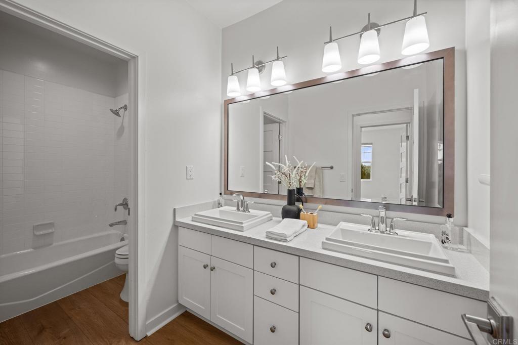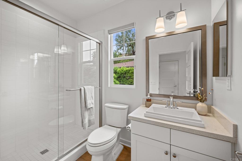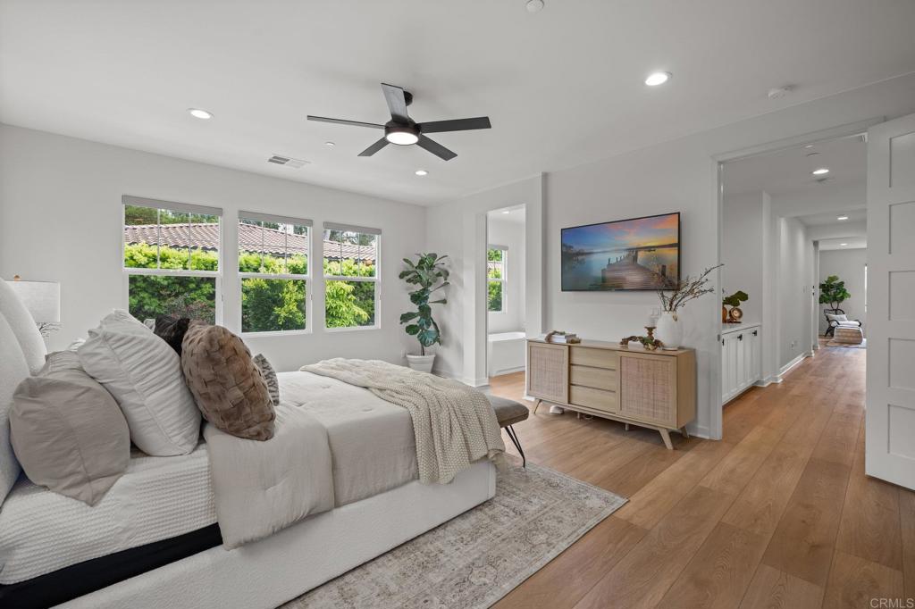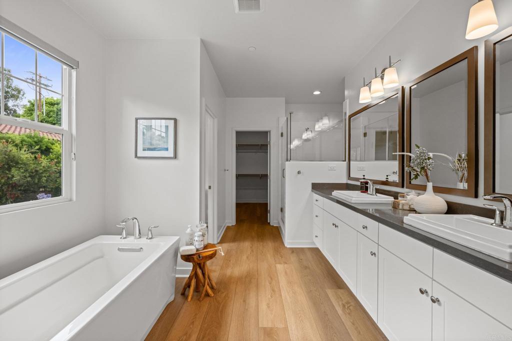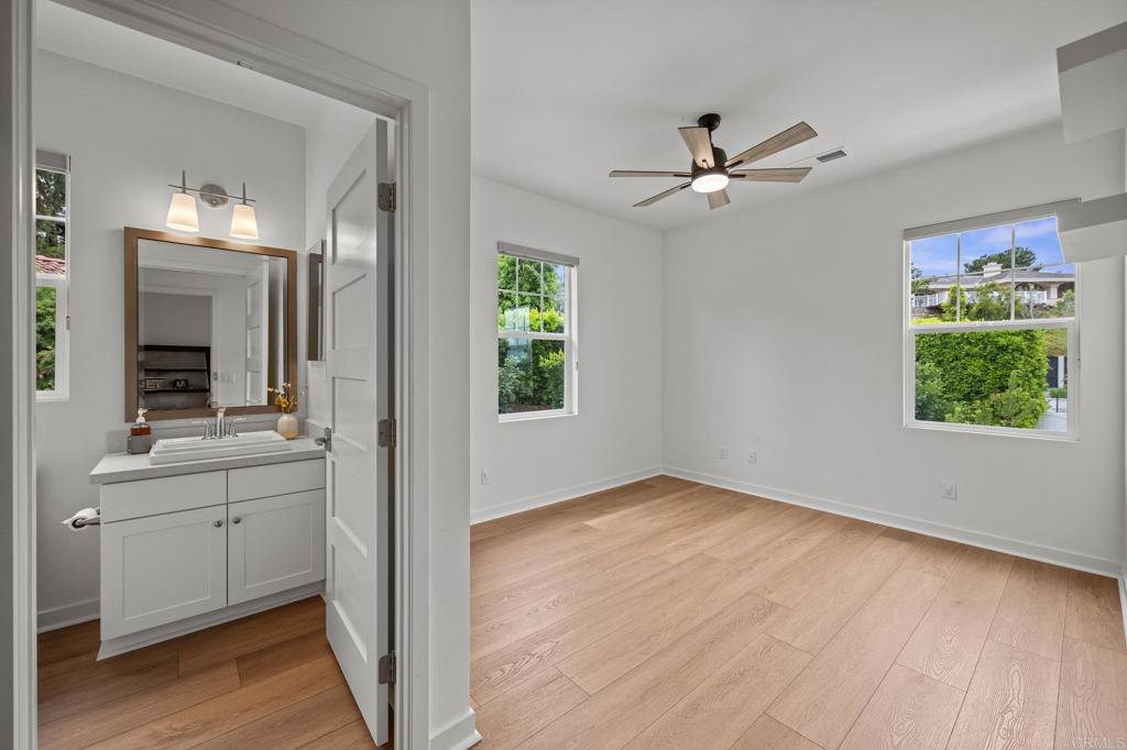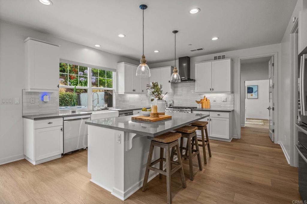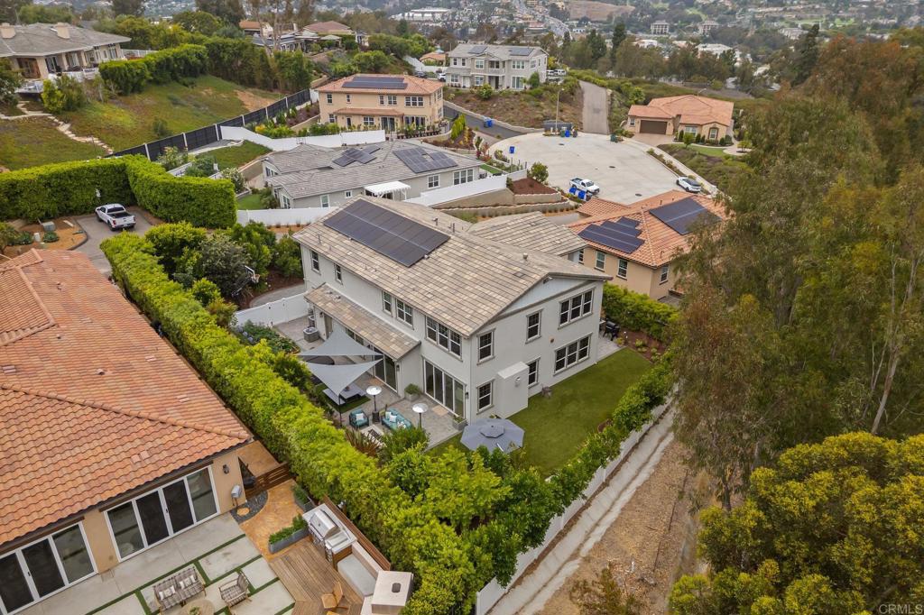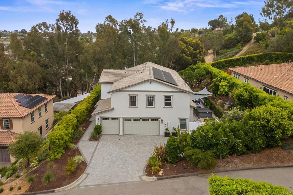 Modern Luxury Meets Coastal Comfort in the Heart of Carlsbad. Welcome to 3115 Afton Way--where thoughtful design, high-end upgrades, and everyday privacy come together in one exceptional turnkey home. Built in 2018 and tucked away on a quiet cul-de-sac, this move-in ready gem offers spacious living, modern energy efficiency, and a prime location just minutes from Carlsbad's beaches, village shops, and top-rated schools. Step inside to a bright, open floor plan with soaring ceiling, new designer wood tile flooring, interior paint, lighting and airy living spaces designed for both gathering and retreat. At the heart of the home is a dream kitchen featuring double ovens, a walk-in pantry, two dishwashers, a farmhouse sink, and expansive counters--ideal for both entertaining and everyday life.With five generous bedrooms and a versatile loft-style game room, the layout offers flexibility for multigenerational living, guests, or remote work. A main-level suite provides privacy and comfort, while the upstairs primary retreat boasts a spa-like bath, oversized walk-in closet, dual sided fireplace and a cozy sitting area or home office--all with serene northeast views. Step outside to your private backyard oasis, thoughtfully designed for easy entertaining and year-round enjoyment. Highlights include new brick pavers, artificial turf, a built-in fire pit, a relocated BBQ area for improved flow, and a hot tub surrounded by lush eucalyptus and fruit trees. Additional exterior enhancements have transformed the space with upgraded lighting, irrigation, shade canopies, fresh paint, and modern outdoor electrical, and there is plenty of room to add a pool. The home also features a fully paid 7kW solar system installed in 2023--providing enough power to run the entire household, charge an electric vehicle, and keep the hot tub ready for a relaxing soak--all while significantly reducing energy costs. A spacious three-car garage offers ample room for storage, complete with a mudroom and a separate bonus room perfect for a home office or gear room.Located within walking distance to Carlsbad High School, Valley Middle, and Magnolia Elementary, and set in a peaceful neighborhood with no through-traffic and 24-hour community surveillance, this home truly offers the best of both comfort and convenience. Don't miss the rare opportunity to own a meticulously upgraded, energy-efficient retreat in one of Carlsbad's most desirable communities--just minutes to the beach, Carlsbad Village, award-winning restaurants, and major freeways. To view Video click/cut&paste https://listing.hiverealestatemedia.com/vd/201732881